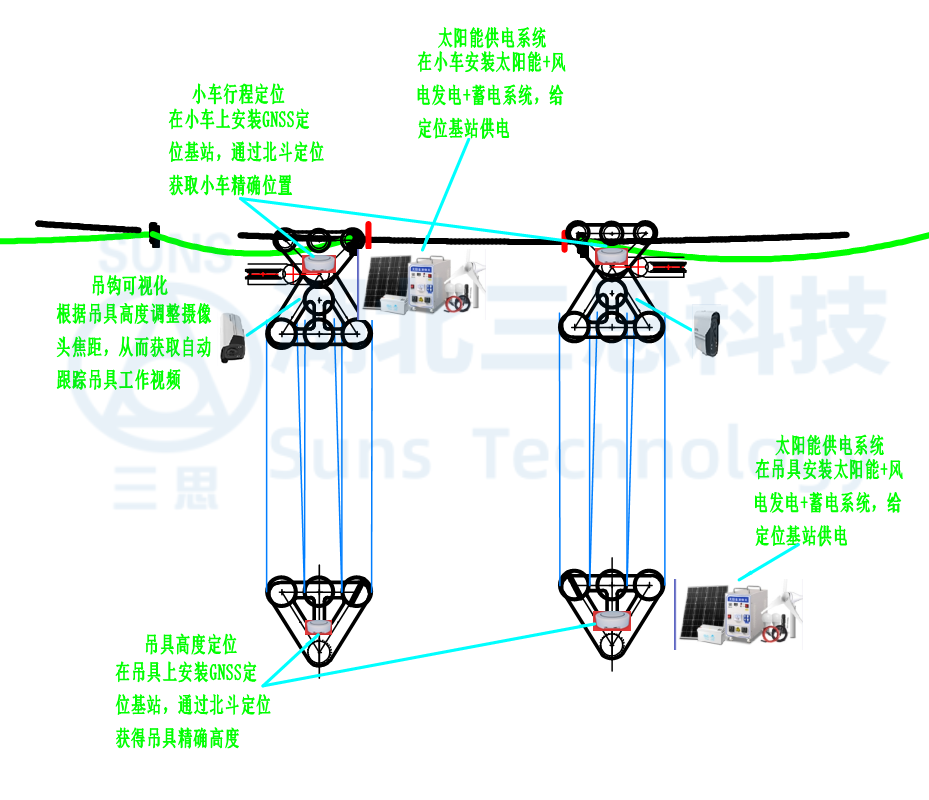 此次我們主要針對纜索吊主承重繩和主稱重小車,以及牽引卷揚(15T))、起吊卷揚(10T)采取實時監(jiān)控,讓纜索吊在施工過程中保持良好的運行姿態(tài),減少失穩(wěn)帶來的安全風險,使纜索吊運行更安全,管理更高效。