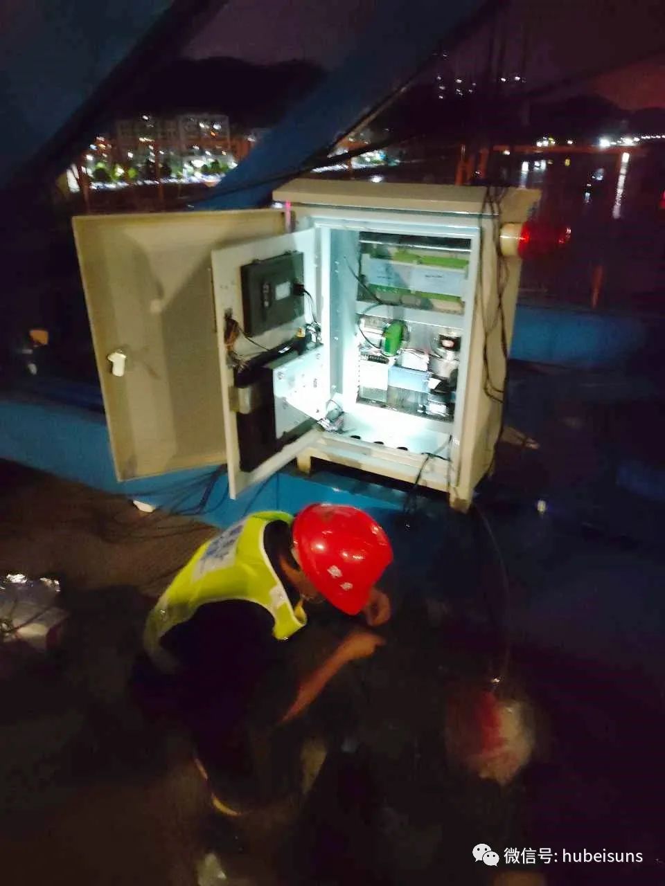頭頂是白云飛流,腳下是伶仃洋海水卷起白色的浪花,站在260多米高的伶仃洋大橋西塔頂,行駛在伶仃洋中的大船猶如火柴盒般大小。在這里,湖北三思科技的工程師每天要乘坐約8分鐘的施工電梯,到達伶仃洋大橋西主塔的塔頂平臺上班。因為工期緊,深中通道關鍵節(jié)點不停工,工程師們日夜堅守在海上施工現場,完成了橋面吊安全監(jiān)控系統(tǒng)的安裝工作。