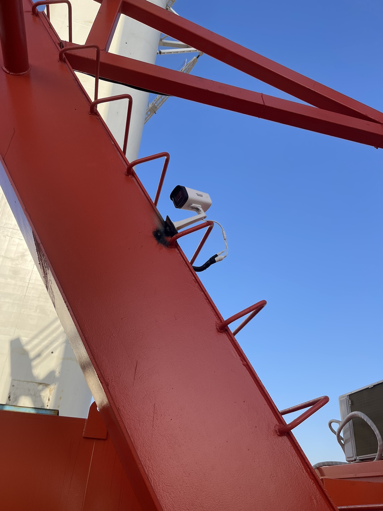 桅桿吊起升卷揚(yáng)、變幅卷揚(yáng)各裝1路攝像頭,用于監(jiān)控現(xiàn)場電機(jī)卷揚(yáng);桅桿吊桿頭裝一路球機(jī),用于監(jiān)控吊裝區(qū)域。監(jiān)控設(shè)備的視頻監(jiān)控顯示器放置于司機(jī)室內(nèi),可以讓駕駛員全方位掌握桅桿吊的實(shí)時(shí)運(yùn)行狀況,提高了操作的安全性。