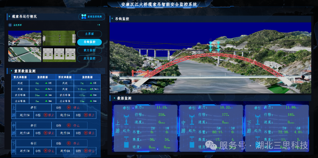 安康漢江大橋全長(zhǎng)367.9米,采用鋼混結(jié)合梁結(jié)構(gòu),主梁設(shè)計(jì)采用了半漂浮約束體系。該橋跨越G211國(guó)道、漢江和S207省道,是全國(guó)高速鐵路單孔跨度最大的時(shí)速350公里中承式鋼管混凝土拱橋。大橋的主拱跨度達(dá)到290米,共有52根樁基礎(chǔ),4根拱座斜樁,2個(gè)分離式拱座,6個(gè)墩臺(tái),拱肋分為38個(gè)節(jié)段,在拼裝平臺(tái)預(yù)拼裝后,使用150噸的龍門吊及平板運(yùn)輸車運(yùn)送至橋位,通過(guò)兩岸的纜索吊吊裝施工。在施工過(guò)程中,項(xiàng)目部成立高速鐵路1-290米中承式鋼管混凝土提籃拱橋施工關(guān)鍵技術(shù)研究小組,加強(qiáng)與科研機(jī)構(gòu)和高校的合作,通過(guò)理論分析、數(shù)值模擬和現(xiàn)場(chǎng)試驗(yàn)等多種方式,不斷優(yōu)化施工方案,組織專家進(jìn)行評(píng)審論證,提高施工效率和質(zhì)量。積極利用移動(dòng)互聯(lián)網(wǎng)、三維GIS、視頻監(jiān)控、物聯(lián)網(wǎng)、BIM、大數(shù)據(jù)、智能化等技術(shù)建設(shè)基于BIM的數(shù)字化工程管控平臺(tái),為施工項(xiàng)目安全生產(chǎn)的集約化、扁平化和標(biāo)準(zhǔn)化管理提供信息化支撐,通過(guò)不良地質(zhì)自動(dòng)監(jiān)測(cè)設(shè)備、纜索吊安全監(jiān)控設(shè)備、150噸龍門吊安全監(jiān)控設(shè)備等外鏈系統(tǒng)、智慧工地的構(gòu)建,實(shí)現(xiàn)現(xiàn)場(chǎng)檢查與在線監(jiān)控相結(jié)合,提升施工項(xiàng)目安全生產(chǎn)的總體管控能力。