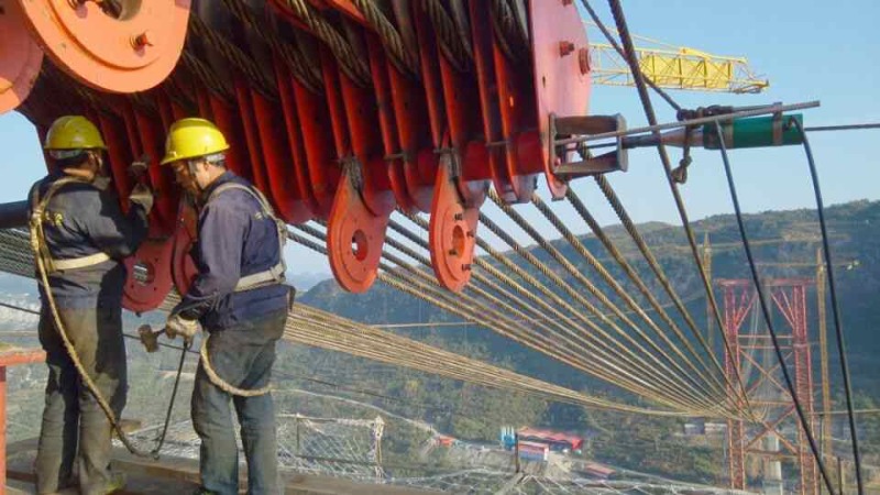 纜索起重機是指以柔性鋼索作為大跨距架空承載構(gòu)件,供懸吊重物的載重小車在承載索上往返運行,具有垂直運輸和水平運輸功能。
